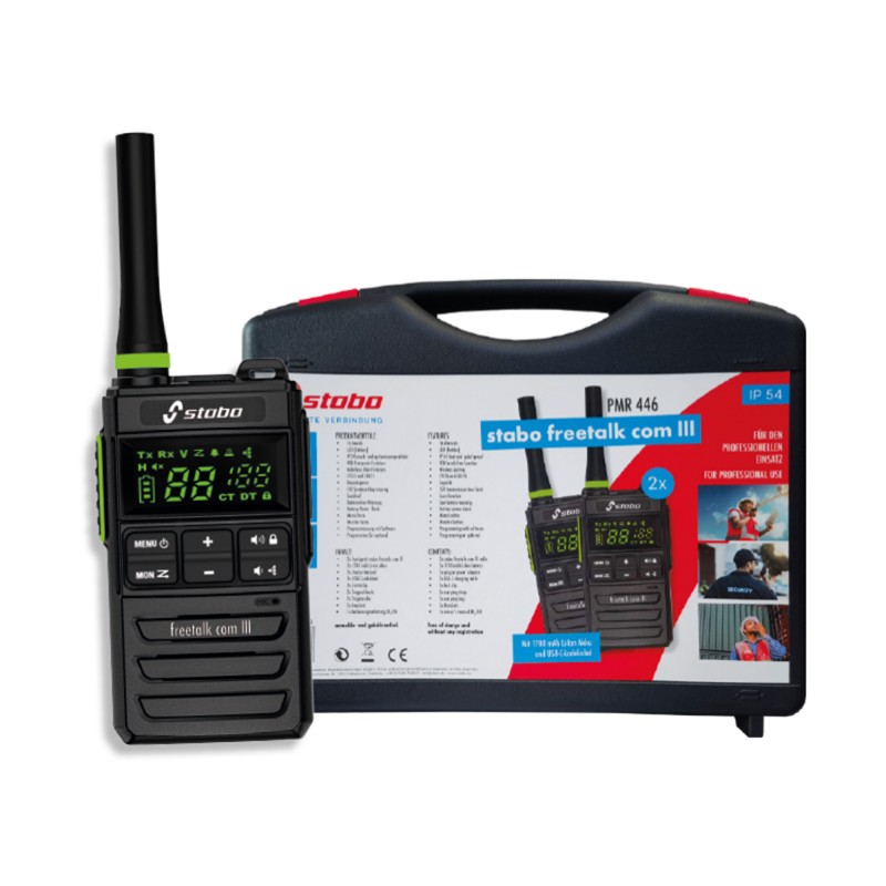 | :Accessoires inclus | 2 Emetteurs-récepteurs portatifs PMR 446 , 2 Dragonnes , 2 Clips de ceinture amovibles , 2 Packs Accus , 1 Manuel d’utilisation |